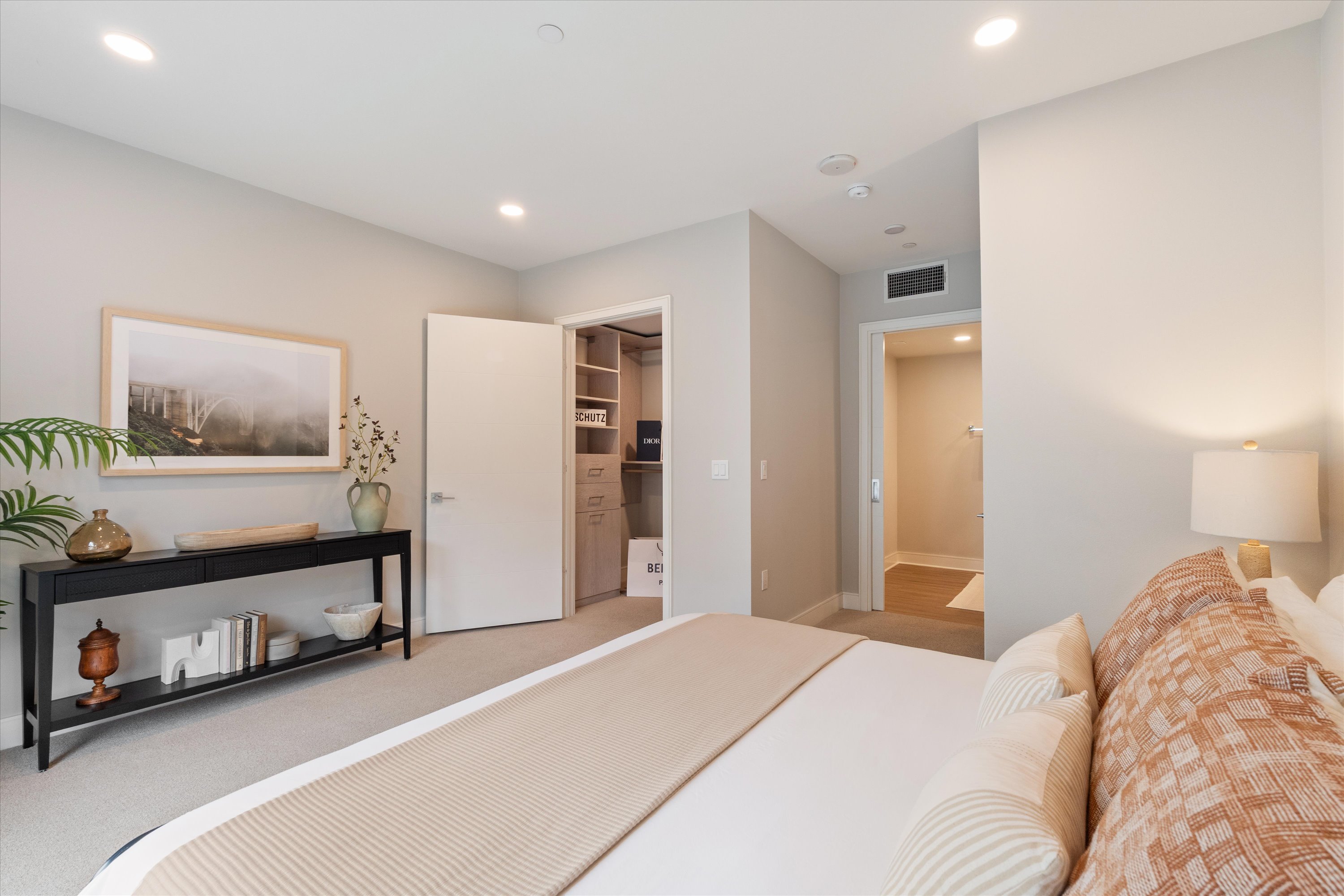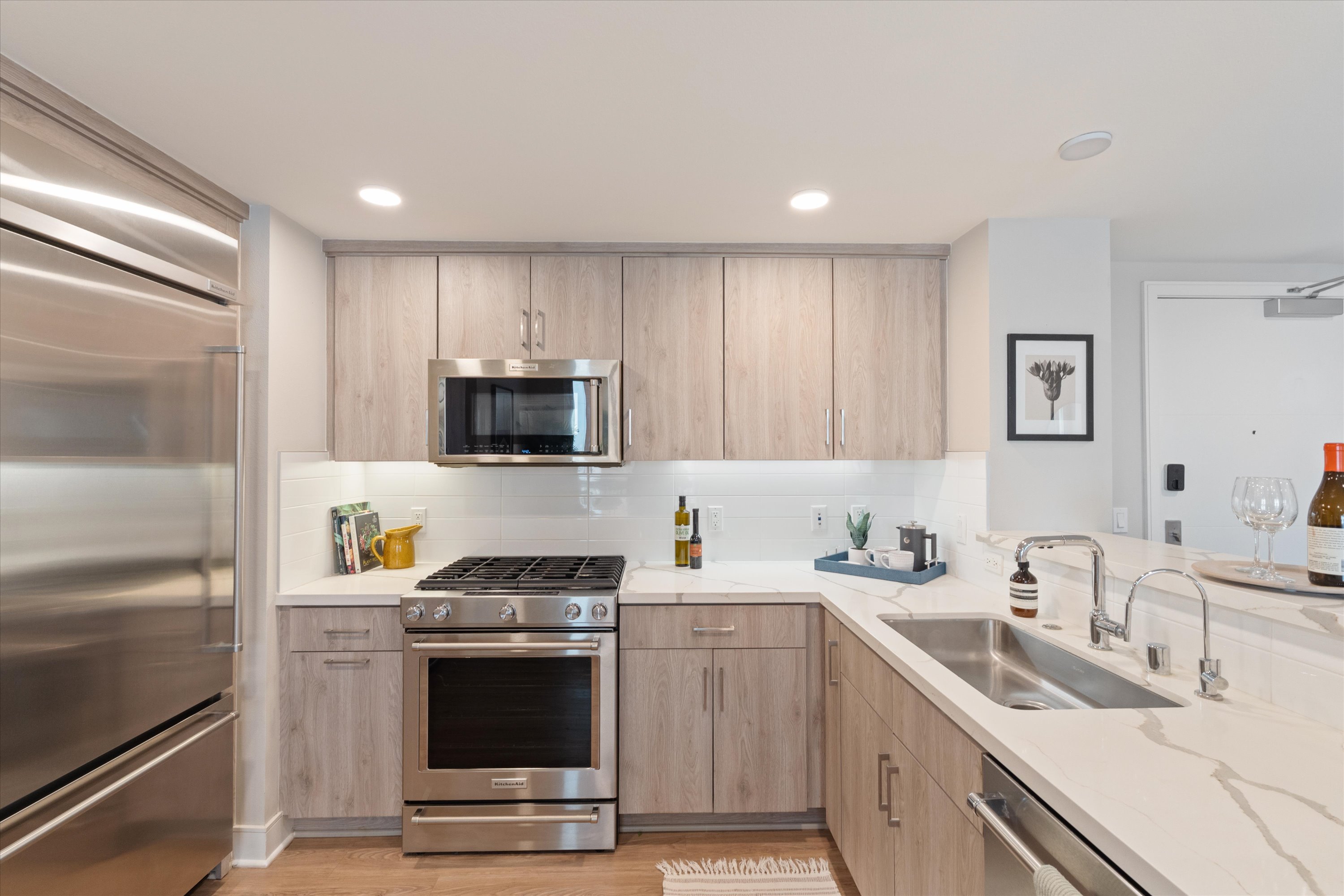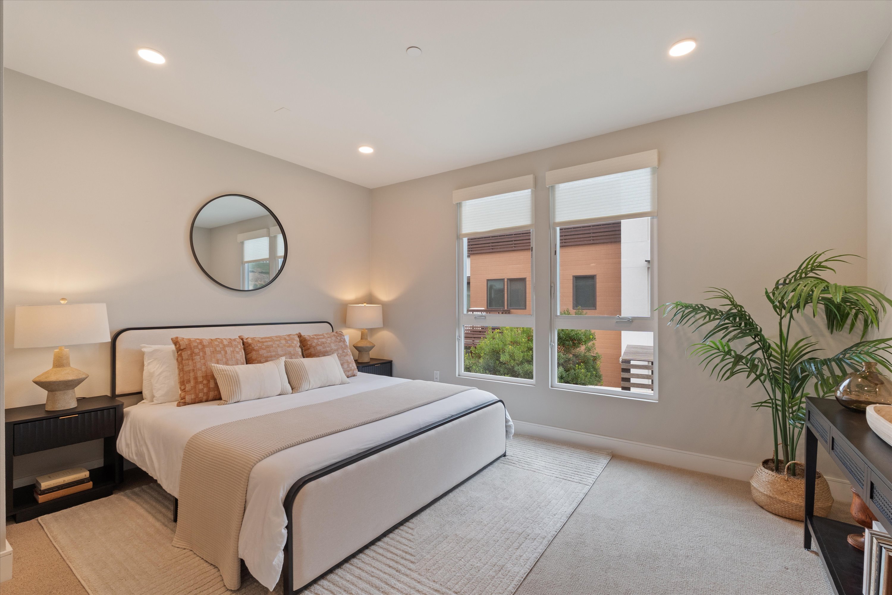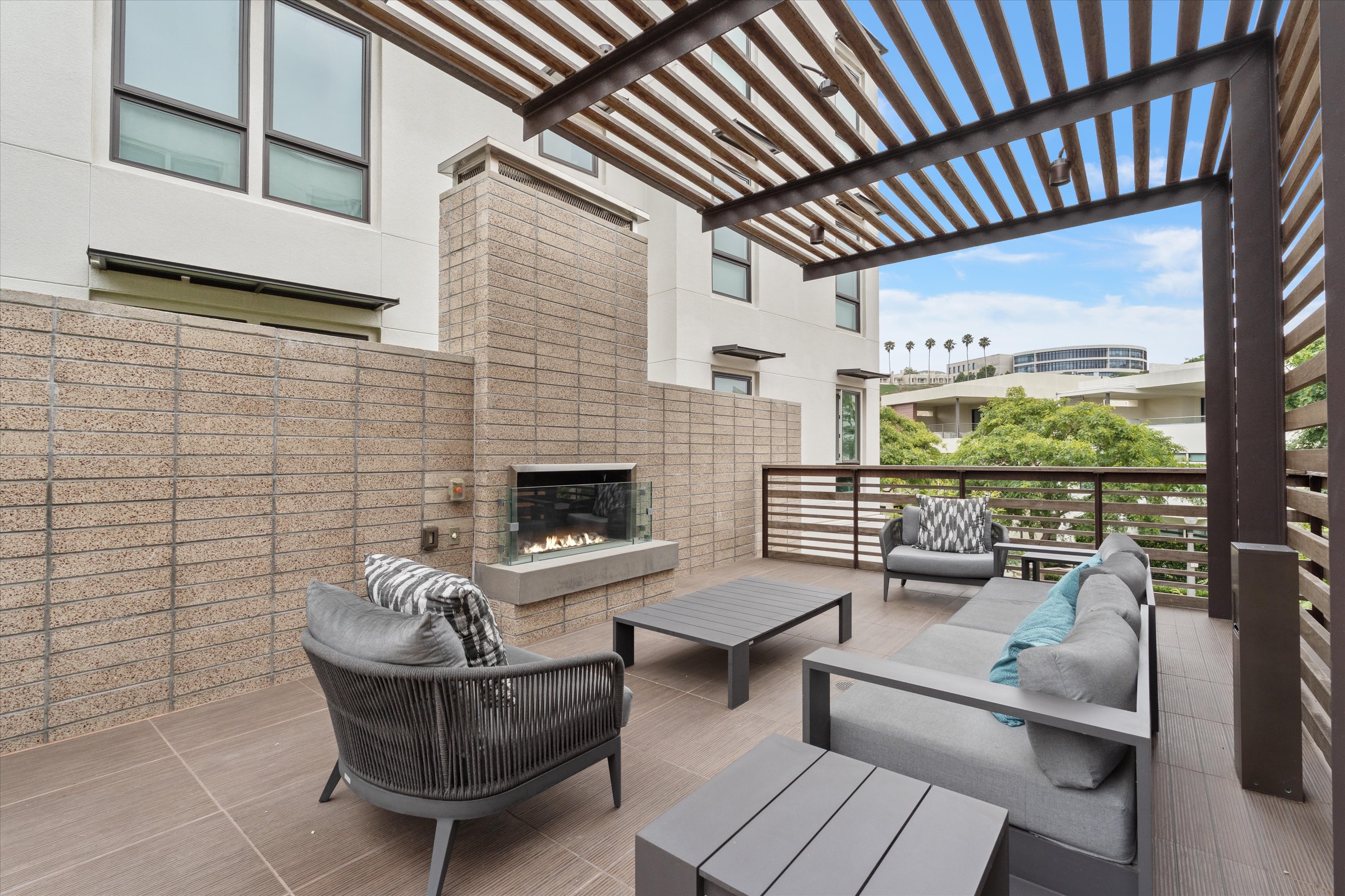 Welcome to refined living in the heart of Playa Vista. Perched on the 4th floor of The Seabluff, this stylish 3-bedroom, 2-bath corner residence offers the ideal balance of modern design, comfort, and natural light. Spanning approximately 1,280 square feet of thoughtfully planned single-level living, this east-facing home captures serene views of the Westchester bluffs and lush courtyard below. The open-concept layout flows seamlessly from the sleek, modern kitchen, complete with stainless steel appliances, designer finishes, and warm neutral tones, into a bright and inviting living space. Window shades on all windows provide both privacy and light control. Step out to your private covered balcony and enjoy peaceful mornings or golden-hour evenings with tranquil, peek-a-boo bluff views. The expansive primary suite features a spa-inspired bath, a fully built-out California Closet, and a calming retreat for unwinding. Two generous guest bedrooms share a full bath and offer flexible options for a home office, guests, or creative pursuits. Additional conveniences include in-unit laundry, two side-by-side subterranean parking spaces, EV charging throughout the garage, and a large private 100 sq. ft. storage unit. The HOA also includes 1 gigabyte fiber internet and cable TV. The Seabluff is a boutique, newer-construction community featuring beautifully landscaped courtyards, a cozy outdoor fireplace, and peaceful water features. Step outside and you're moments from Concert Park, local cafes, The Coffee Bean, Yummy Market, and all the dining, shopping, fitness, and entertainment the Runway has to offer. Experience the best of Southern California living where luxury, location, and lifestyle meet in one of Playa Vista's most sought-after communities.